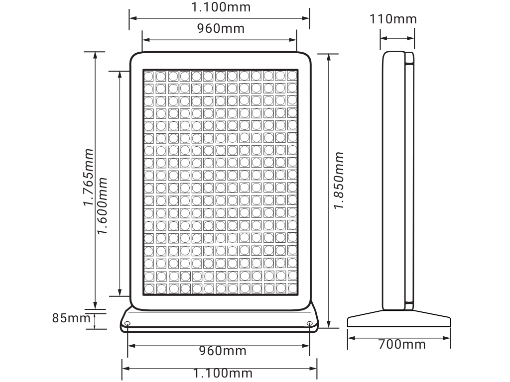 Dimensions du produit 1100 x 1850 mm